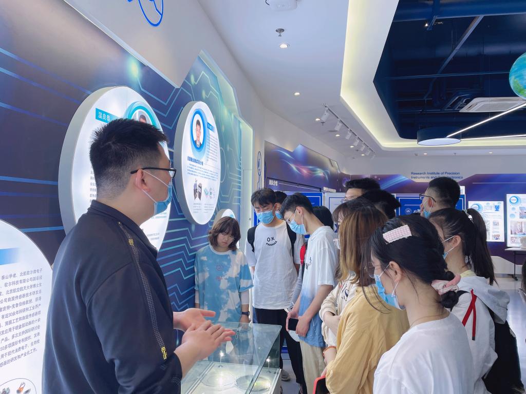 在研究院展厅,观摩北航青岛研究院在虚拟现实、精密仪器与光电、新材料、空天技术应用等领域的最新成果,了解微“芯”党支部建设情况和微电子研究院打造的国内首条8英寸磁传感芯片加工和测试生产线、自主研发国内首套高端商用磁光克尔显微镜等原创突破,学习北航人“微心担大义、逐梦中国芯”,吹响自主创新冲锋号、向“卡脖子”问题宣战的科研初心。