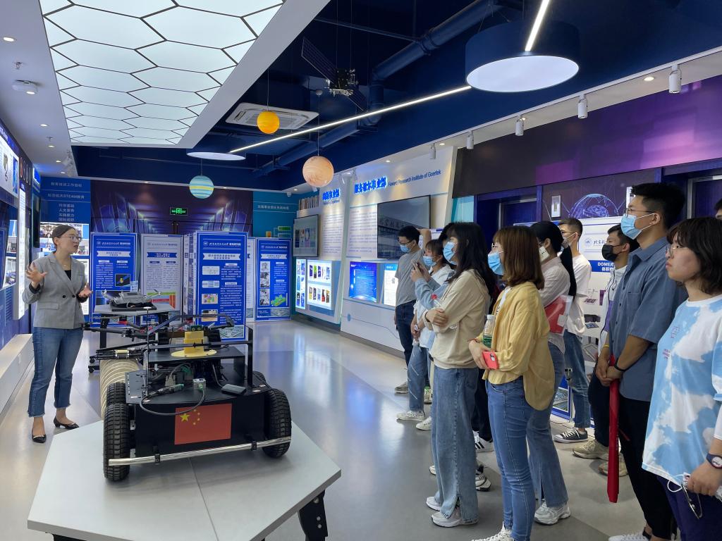 在航空航天STEAM教育基地,深入学习我国载人航天、北斗导航领域的最新成果,追寻“天问一号”的火星探测之路,体悟“北航精神”、“两弹一星”精神和“载人航天精神”的核心内涵。