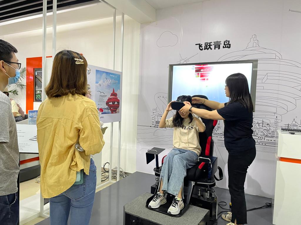 在科技企业展位,“天问一号”弹性绳索、火星探测器着陆段自主导航等航天元素惊喜出现,600公里高速磁浮试验样车、海乐苗移动预防接种车、VR头戴式一体机等高科技产品悉数亮相。同学们共享这场科技创新的饕餮盛宴,感受青岛科研创新事业的最新成果。