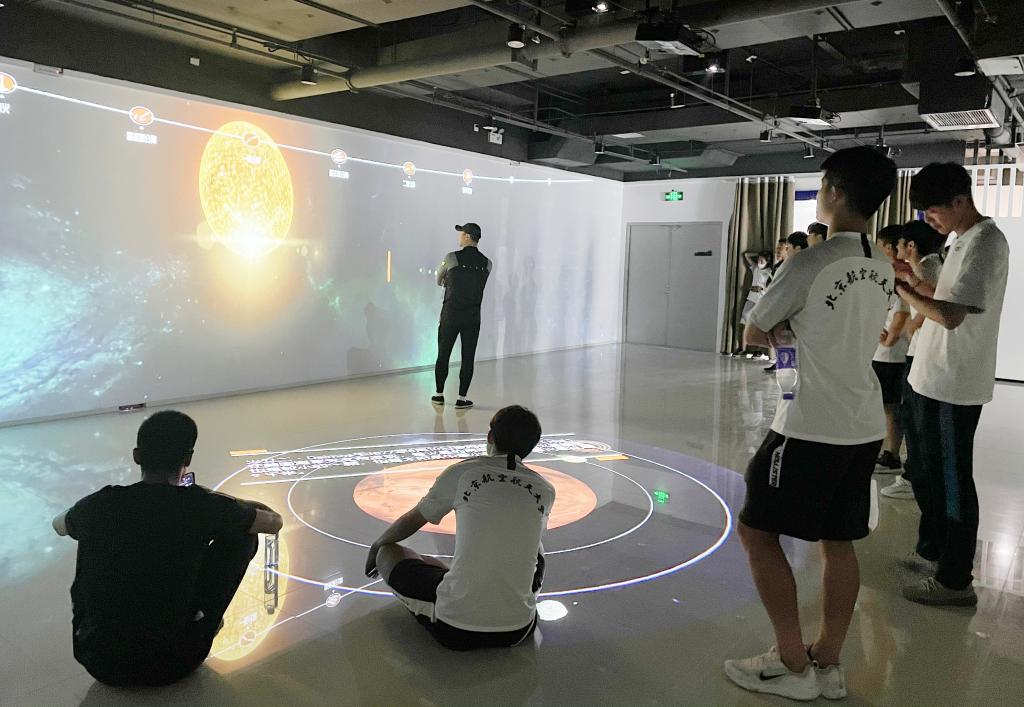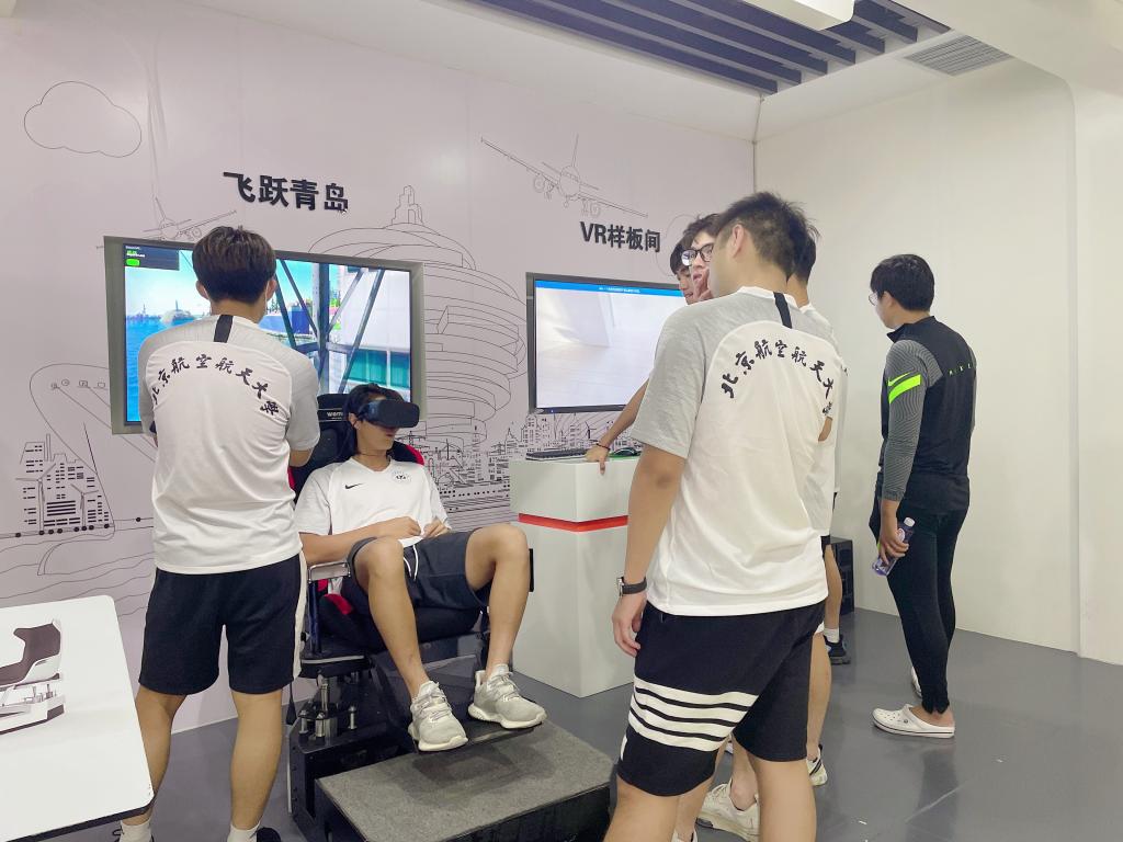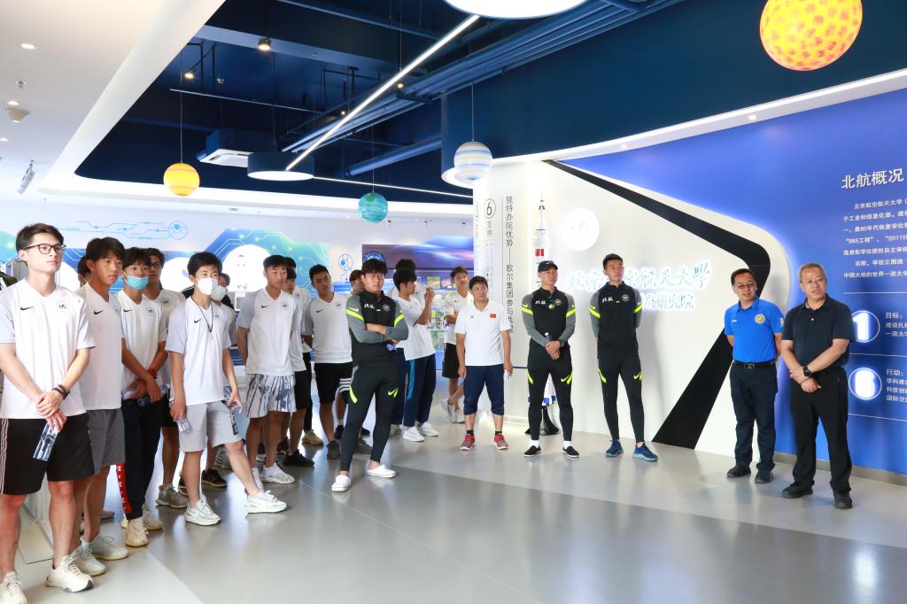 足球队一行先后参观了北航青岛研究院展厅,山东省虚拟现实制造业创新中心展厅,山东省科普教育基地及青岛市科普教育基地、青岛市中小学生研学旅行基地等科普示范项目(航空航天STEAM教育培训基地、无人机科普教育基地、虚拟现实科普教育基地),详细了解了研究院在科研创新、科技成果转移转化与产业化、科普教育基地建设、航空航天特色科普文化教育服务地方社会发展等方面情况。在院参与科研项目的北航师生弘扬“空天报国、敢为人先”的北航精神、迎难而上、舍我其谁的勇气和担当使足球队员们大受鼓舞。